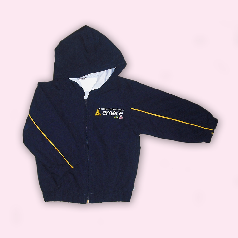BLUSÃO TACTEL MALHA, AZUL-MARINHO, COM FRISO AMARELO NA LATERAL NA MANGA , FORRADO COM MALHA BRANCA . TECIDO TACTEL 100% POLIESTER E TECIDO MALHA 100% ALGODÃO.