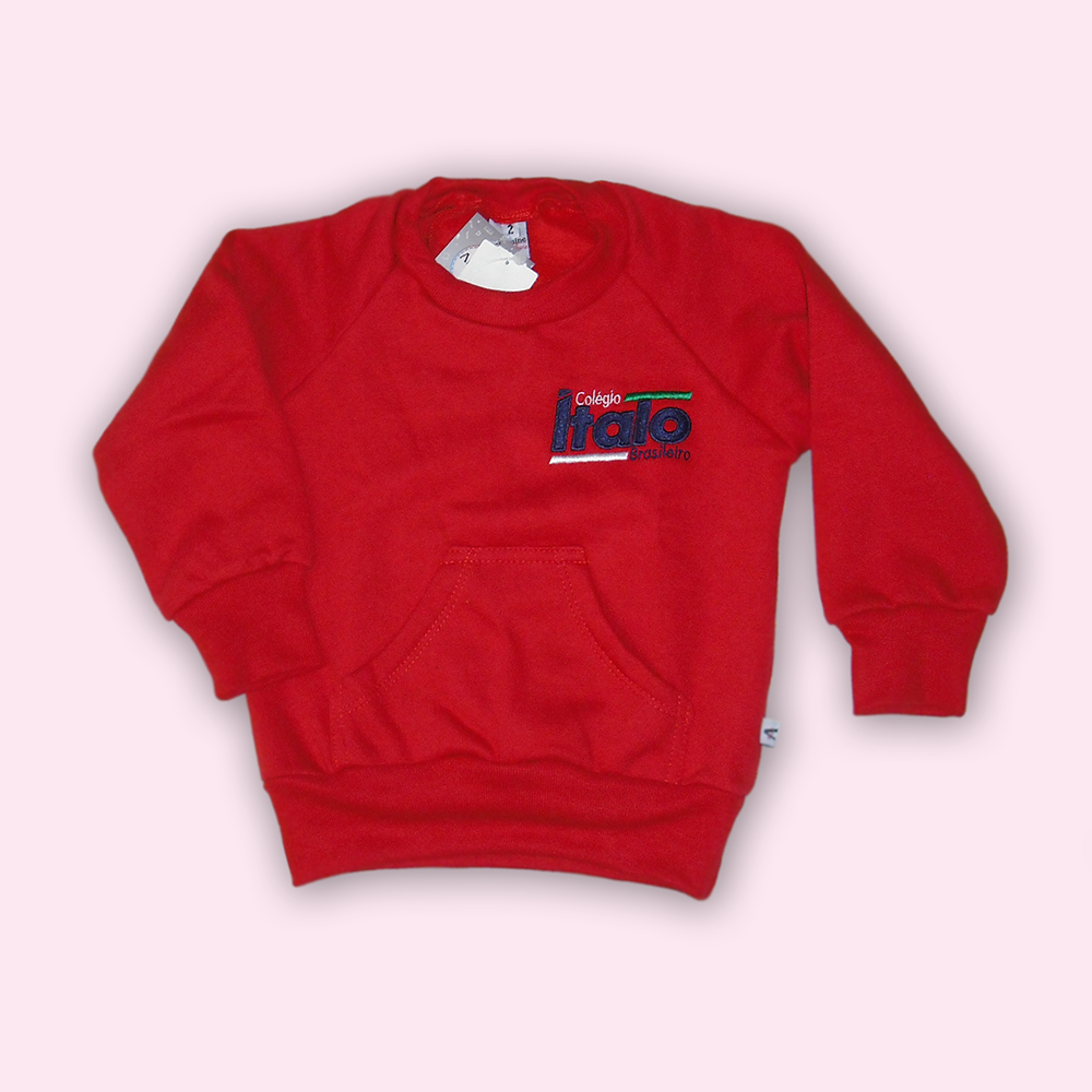 BLUSÃO MOLETON FLANELADO FECHADO, COR VERMELHA, BOLSO CANGURU, COMPOSIÇÃO 100% ALGÕDÃO.