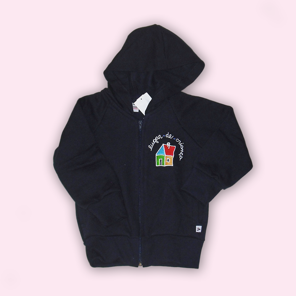 BLUSÃO MOLETON FLANELADO, ABERTO, COM CAPUZ, AZUL-MARINHO, 100% ALGODÃO