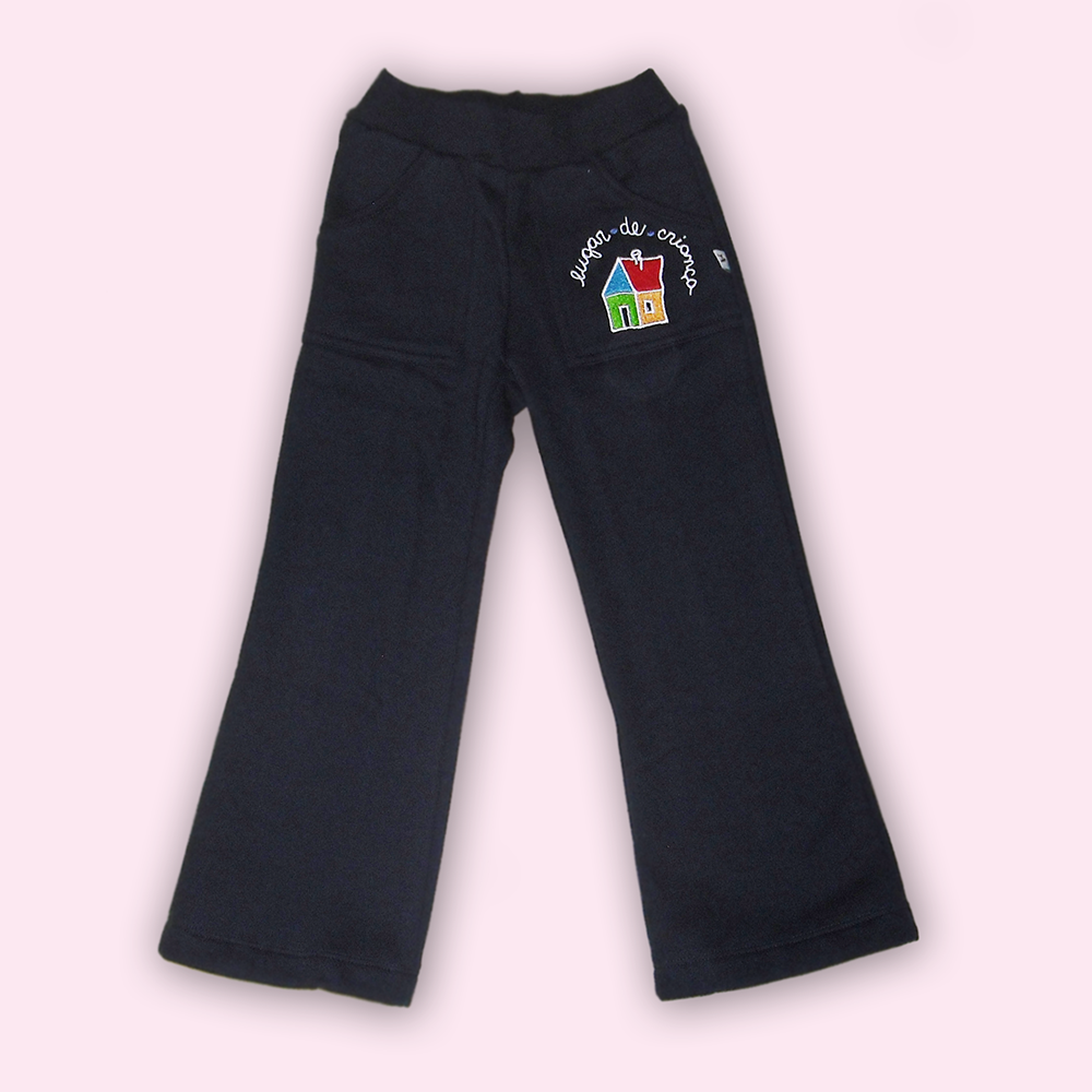 CALÇA DE MOLETON FLANELADA , MODELO FLARE, FEMININA, AZUL-MARINHO, 100% ALGODÃO