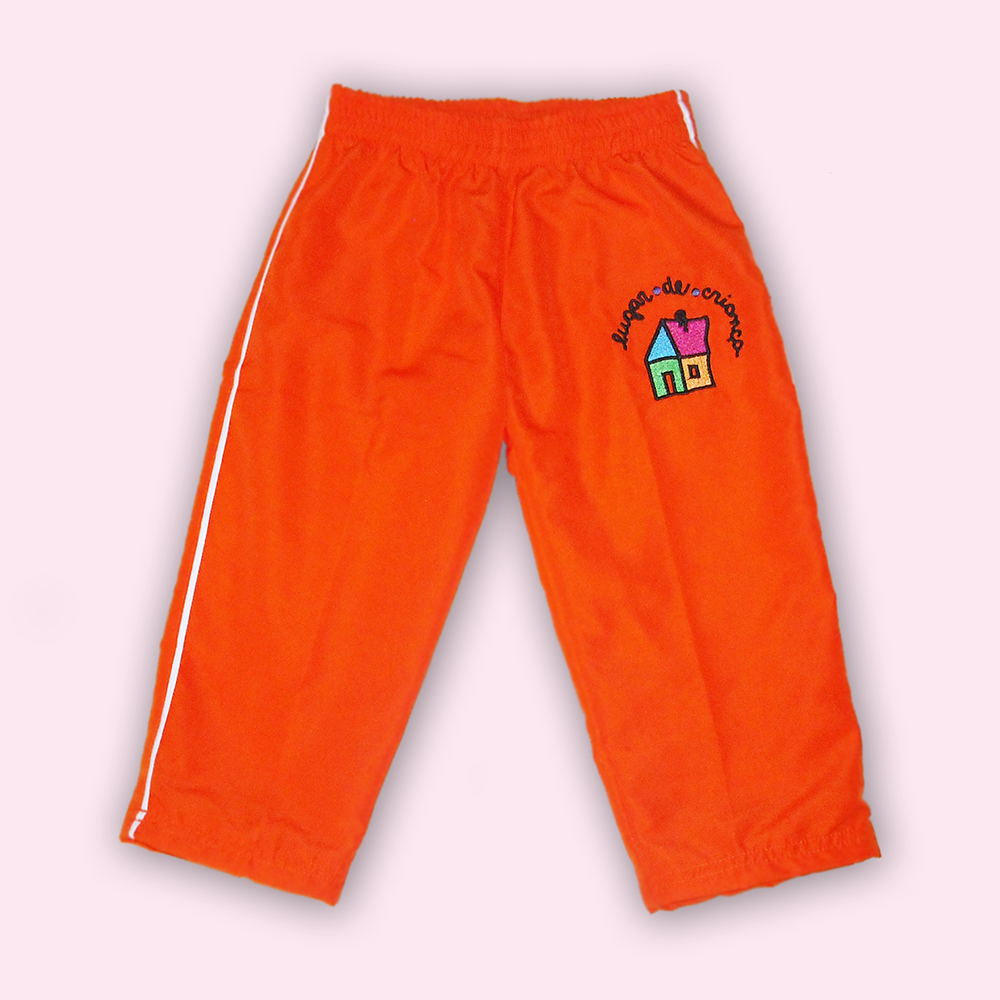 CALÇA DE TACTEL(100% POLIESTER) LARANJA COM FRISO BRANCO NA LATERAL, FORRADA DE MALHA (100%ALGODÃO)