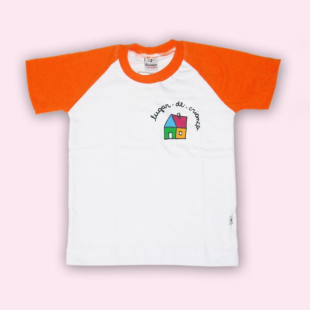 CAMISETA MANGA CURTA BRANCA COM AS MANGAS NA COR LARANJA, 100% ALGODÃO